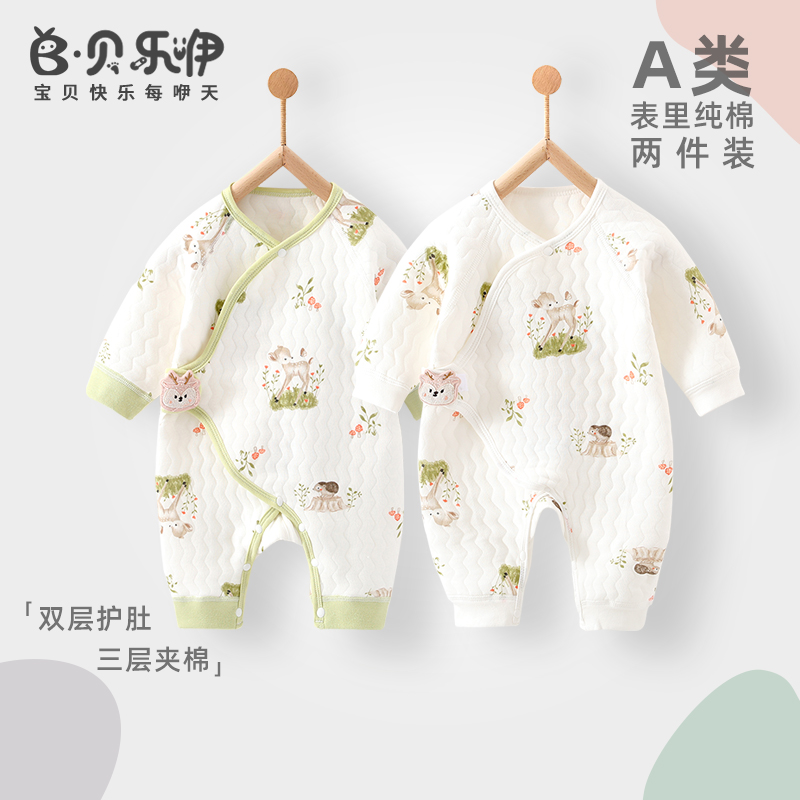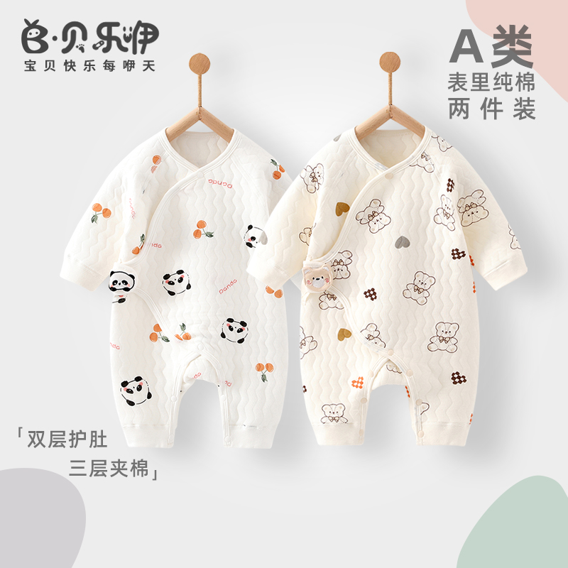 贝乐咿婴儿衣服满月宝宝连体衣秋冬新生儿夹棉保暖衣加棉哈衣a类