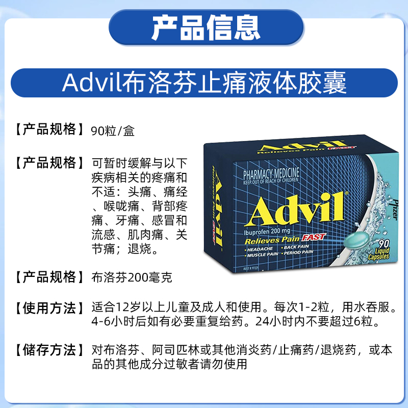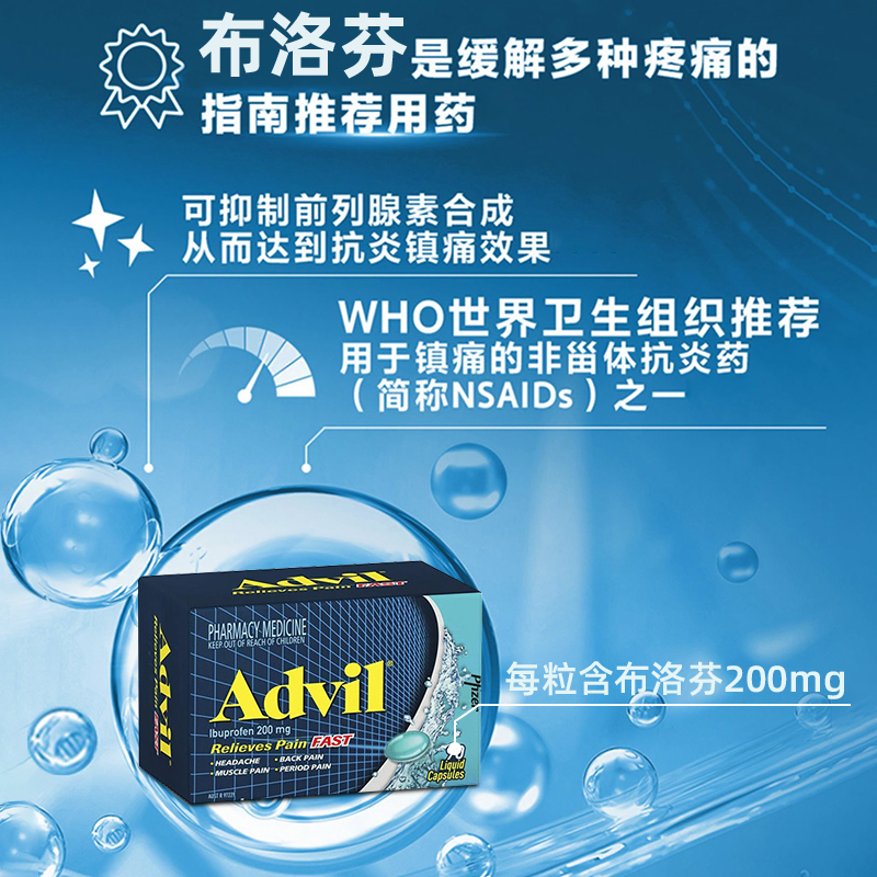 澳洲进口Advil布洛芬液体缓释胶囊止痛退烧痛经痛风消炎流感90粒