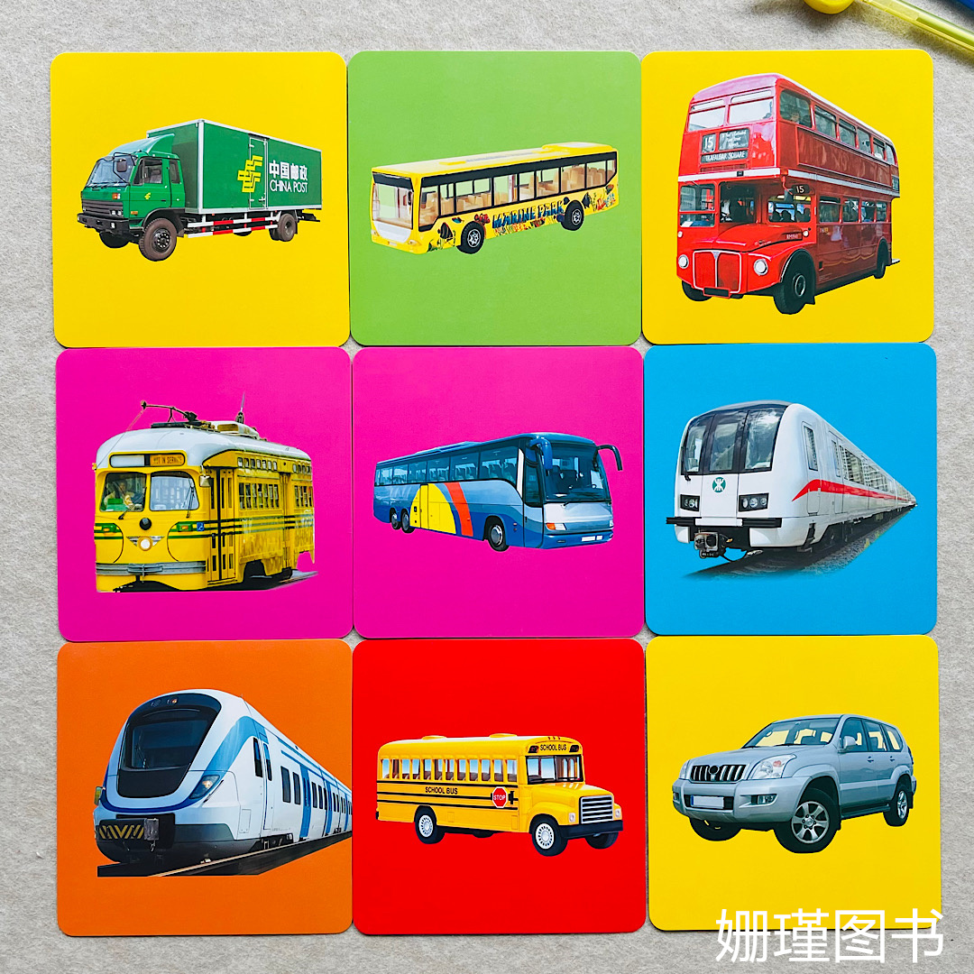 幼儿启蒙认知打卡 认交通工具卡片大图大字认识汽车卡儿童看图认识交通工具早教卡