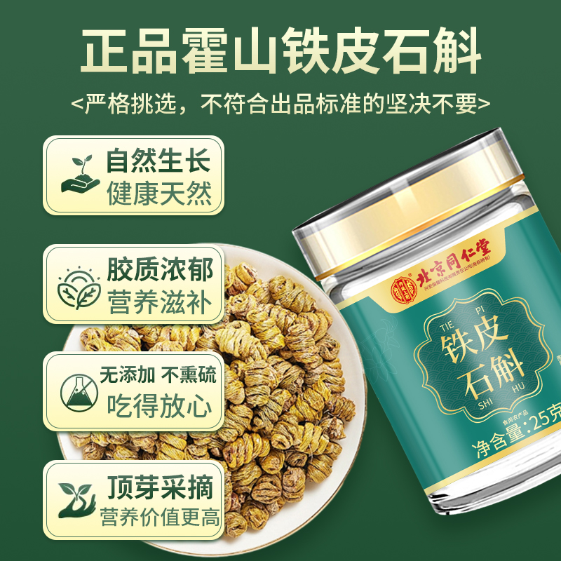 北京同仁堂正宗霍山铁皮石斛官铁皮枫斗中草药材米斛方正品 旗舰店