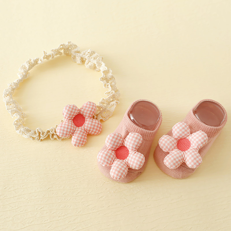 组合 地板袜两件套新生婴儿套装 小月龄袜子 宝宝护囟门发带 夏秋季