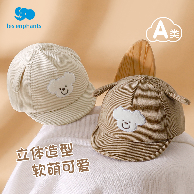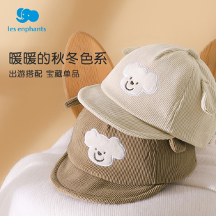 宝宝鸭舌帽子秋冬季 厚男女童可爱小熊防晒灯芯绒婴儿春秋软檐 韩版