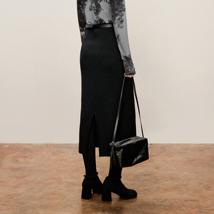 加厚黑色鱼尾裙女秋冬长裙百搭气质a字包臀显瘦羊绒半身裙中长款