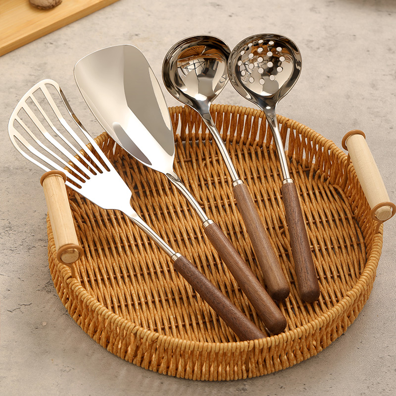 胡桃木汤勺木柄304不锈钢勺子家用火锅漏勺分餐勺大号汤匙拉面勺