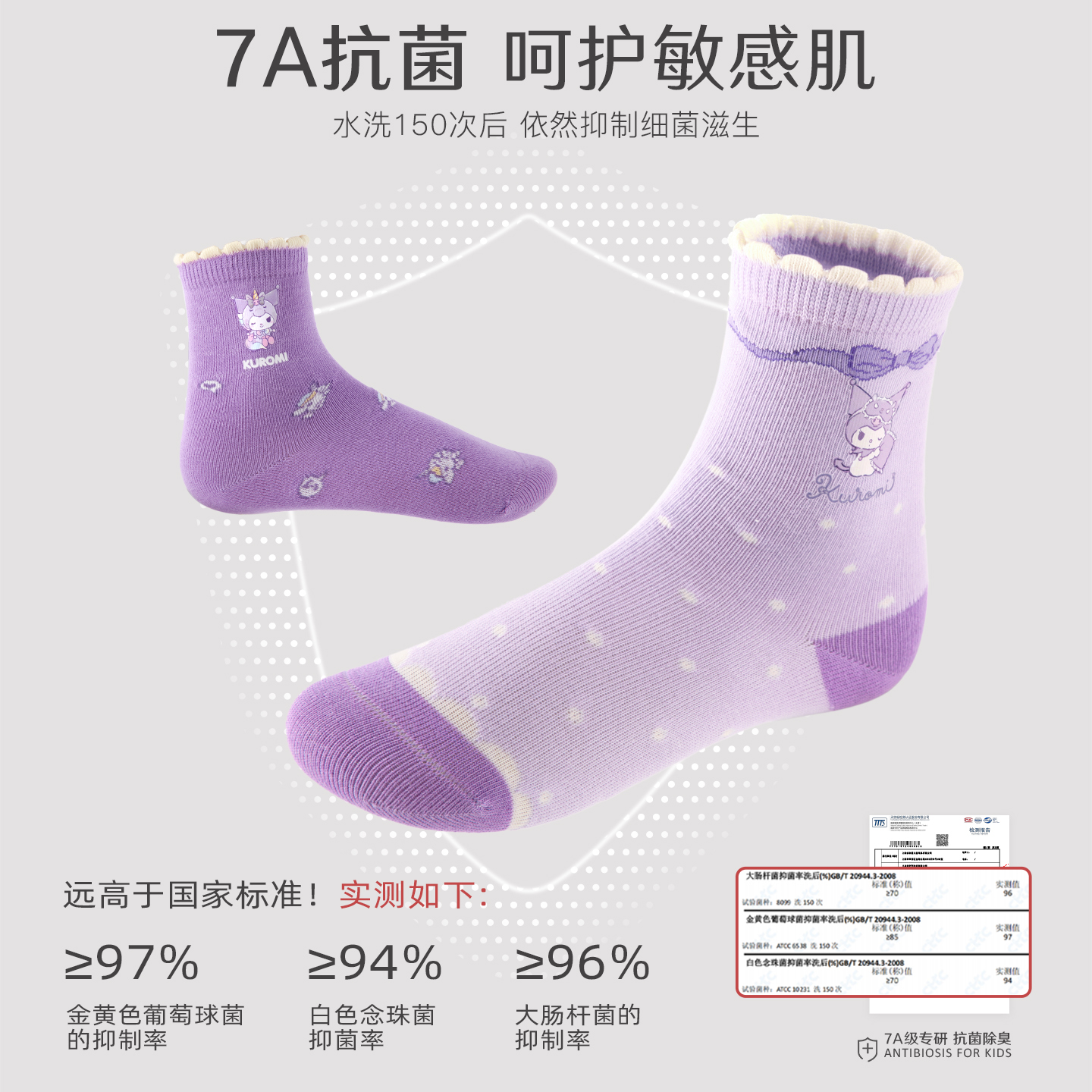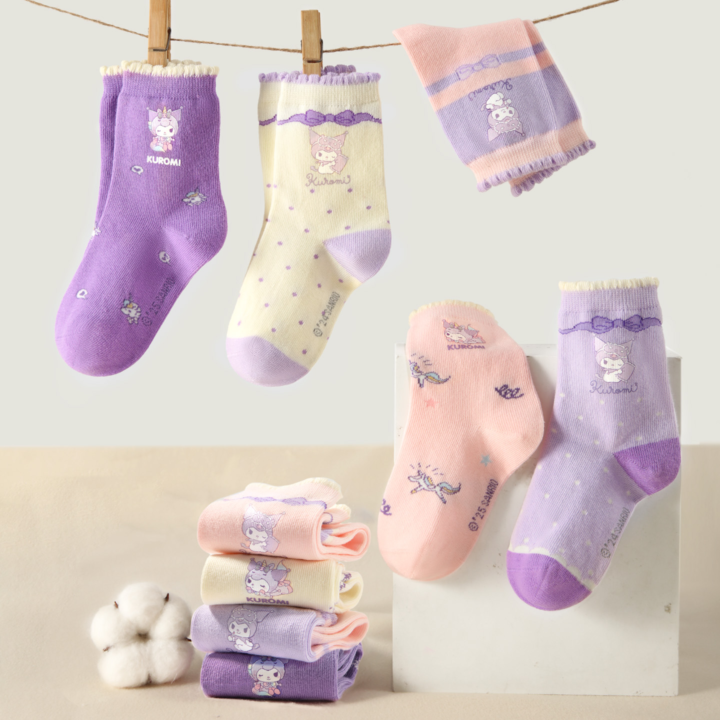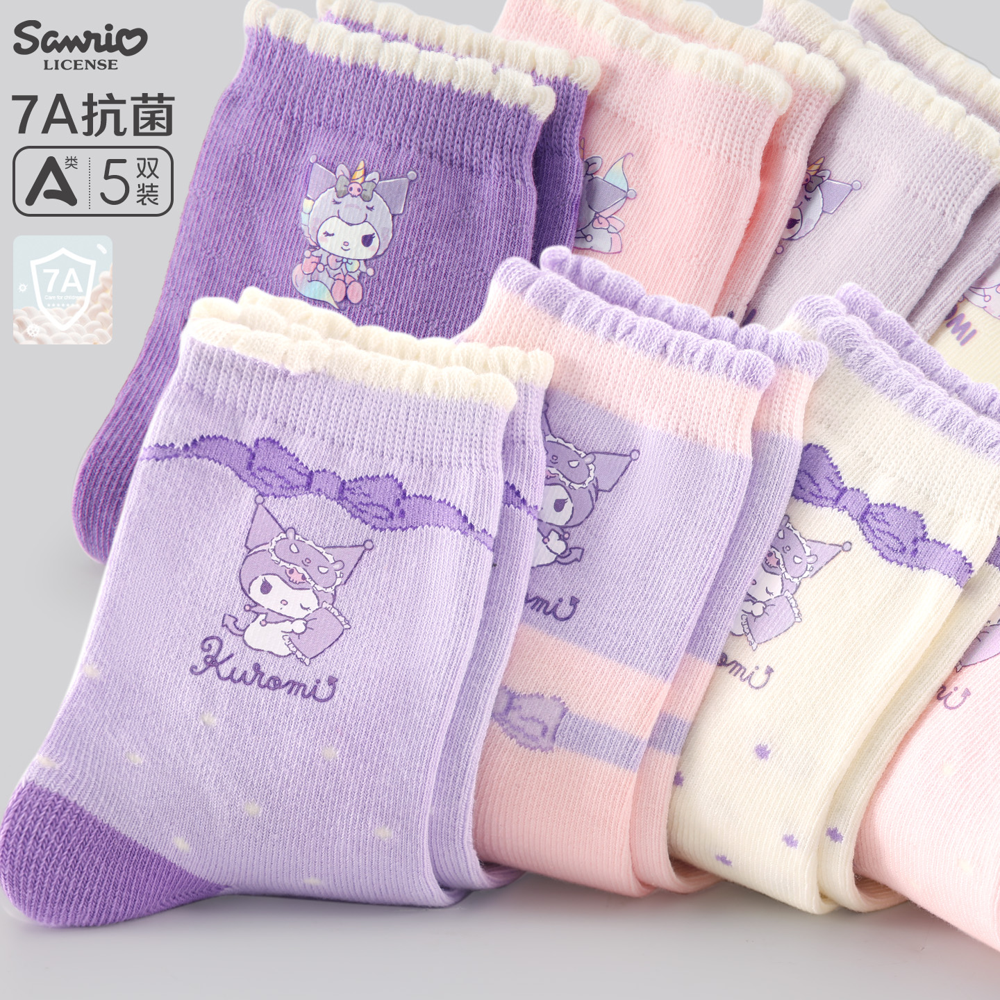 库洛米儿童抗菌袜子25春秋季 棉袜大童长袜女童女孩宝宝中筒袜 新款