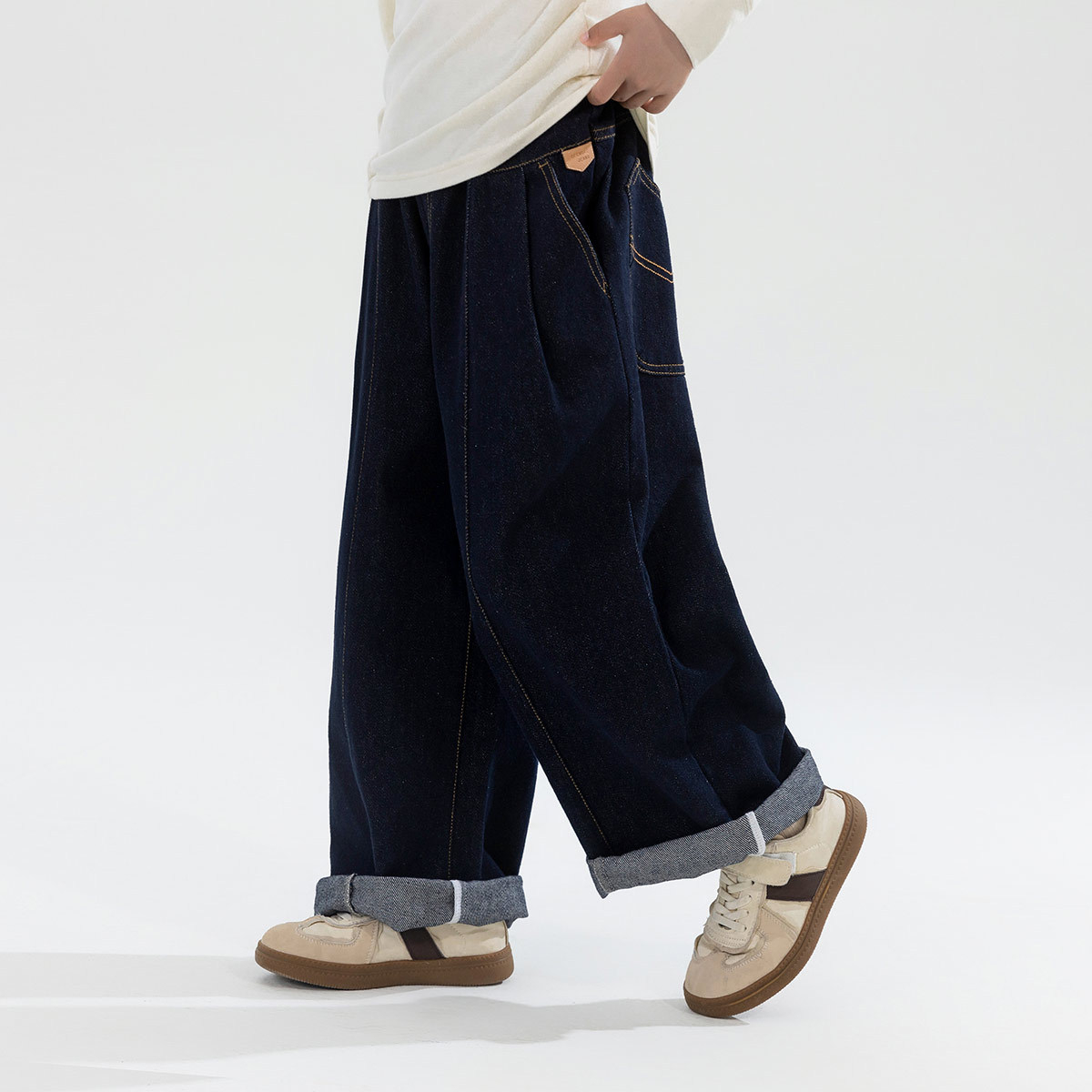 高腰宽松bf慵懒风直筒裤 2025新款 子 女秋季 韩妁雅复古阔腿牛仔裤