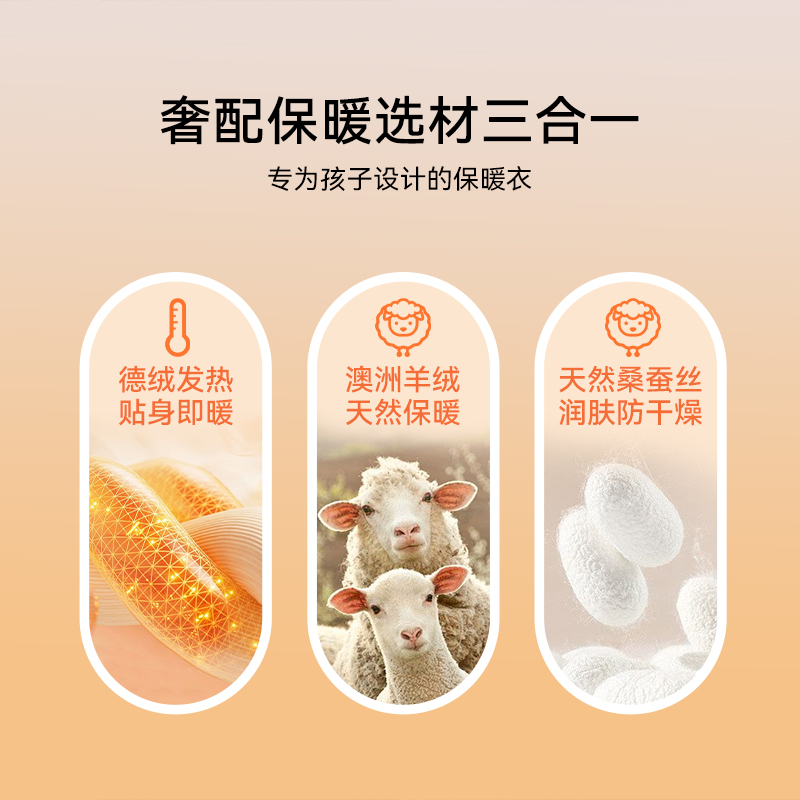 猫人德绒儿童保暖内衣套装 男女秋冬发热羊绒蚕丝宝宝无痕秋衣秋裤