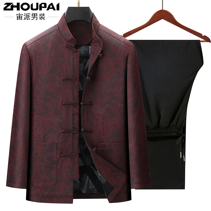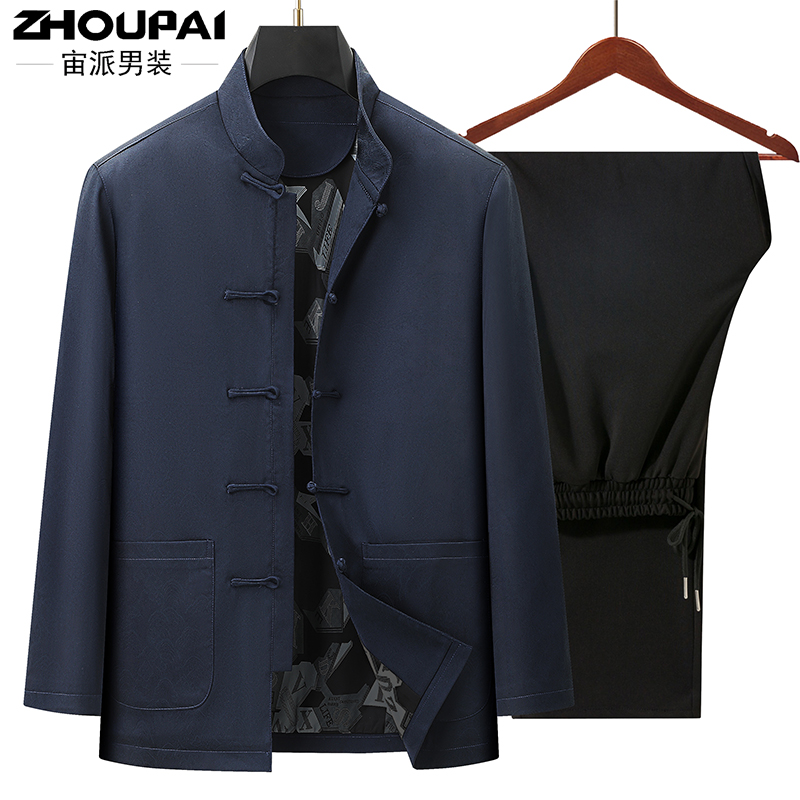 老人汉服套装 中老年唐装 中式 夹克外套中国风爷爷秋季 男爸爸春秋款