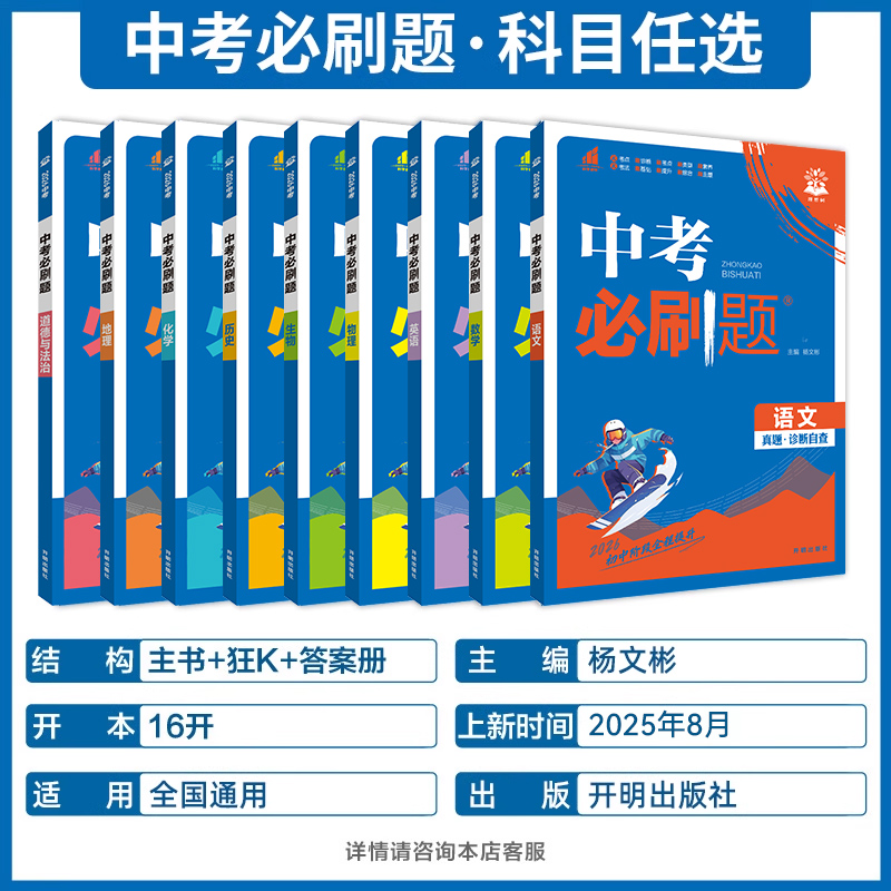 2026版 九年级初三总复习资料初中会考中考真题卷全套模拟试卷练习册 中考必刷题合订本语文数学英语物理化学政治历史地理生物人教版