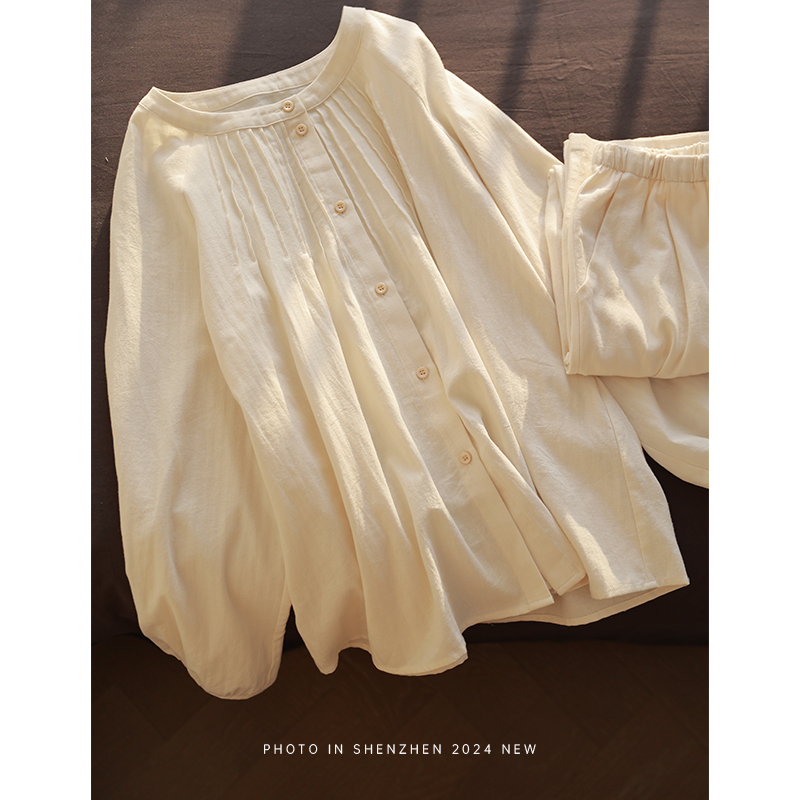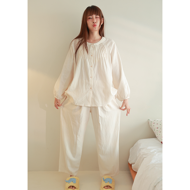 长裤 设计圆领纯棉长袖 家居服睡衣女套装 春季 MollyRosa浅茶 款 时尚
