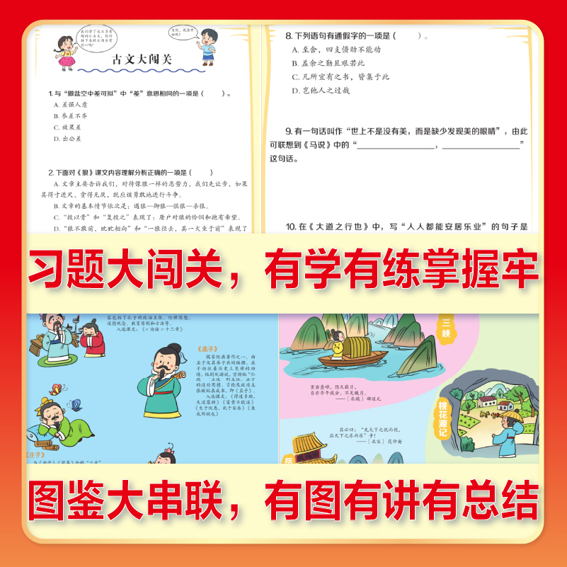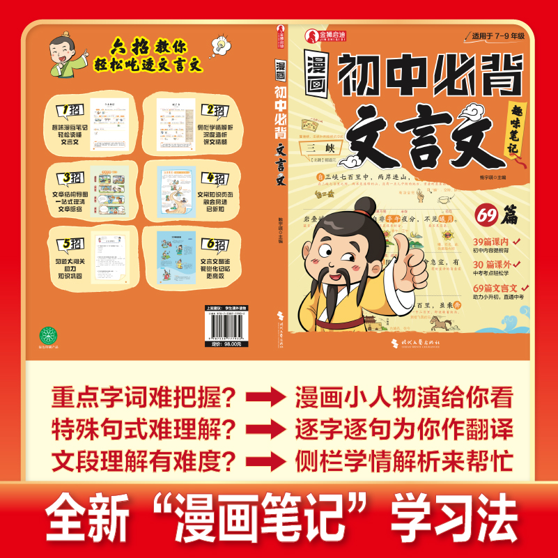 初中必背文言文漫画笔记趣味漫画版 中考文学文化常识初一二三初中必背古诗词漫画笔记备开心童书 文言文全提前学背七八九年级人教版