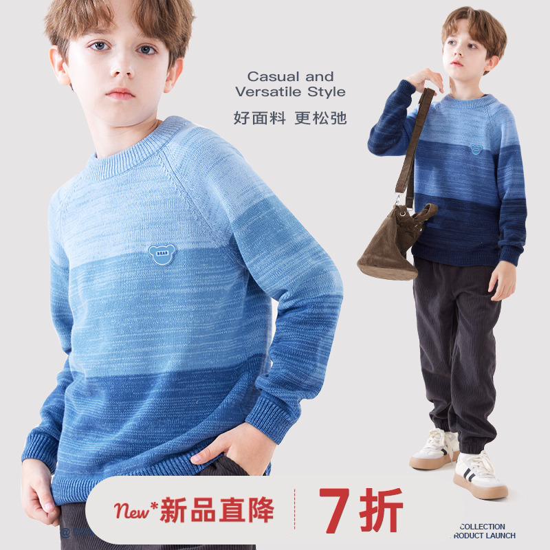 洋气童装 儿童毛衣男童针织薄款 大童纯棉线衣秋冬打底衫 新款 春秋季