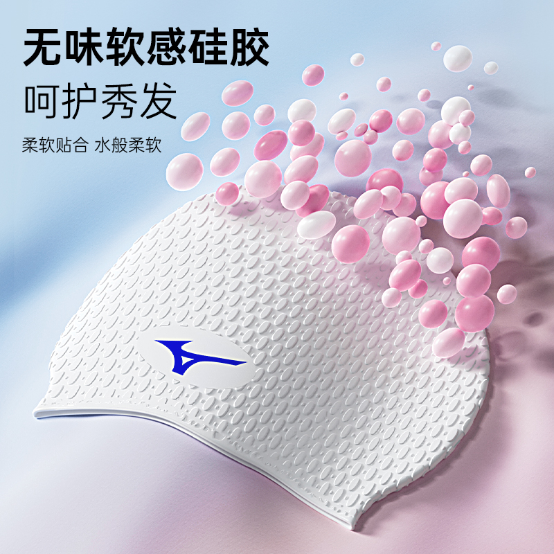 美津浓游泳帽女款 白色成人专业不勒头防水硅胶泳帽长发加大护耳男