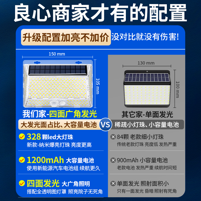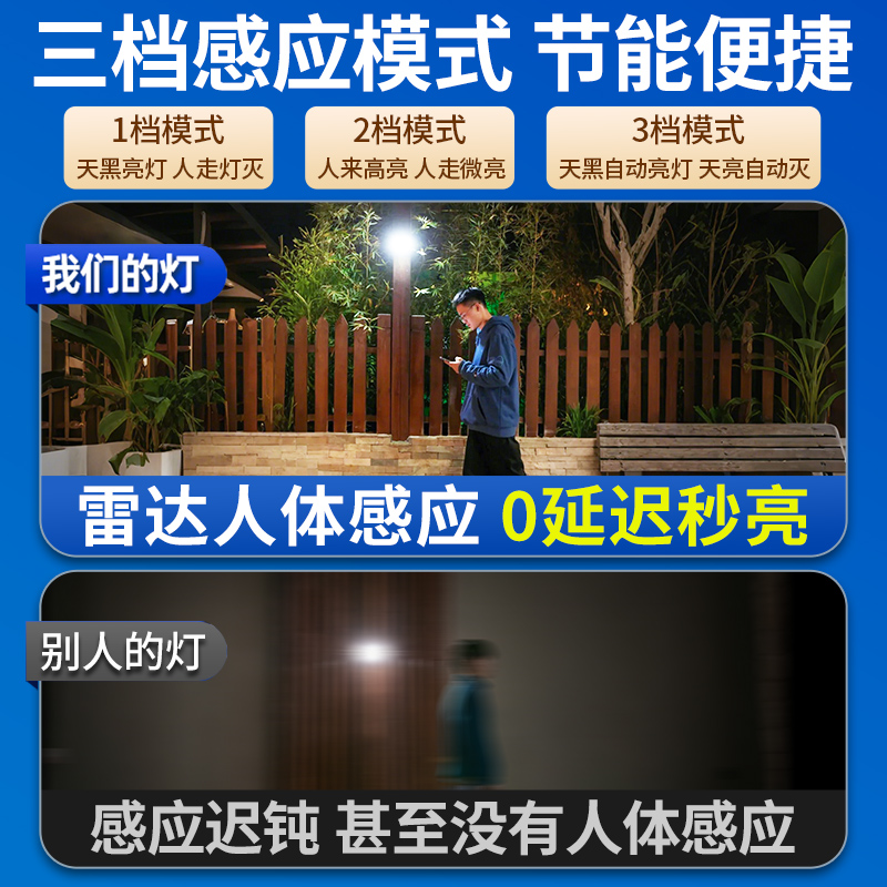 新款 太阳能庭院户外家用别墅大门口人体感应院子室外阳台防水壁灯