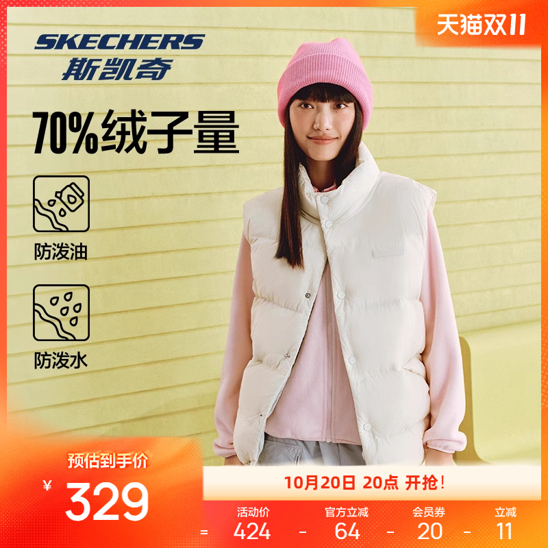 斯凯奇男女同款 运动服 冬日防泼水防油保暖高领防风羽绒背心时尚