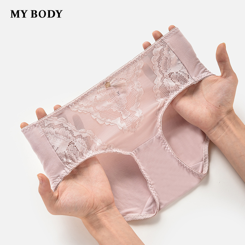藤蔓棉质底裆性感蕾丝中腰平角裤 免定金 女花 爱慕内裤 3件包