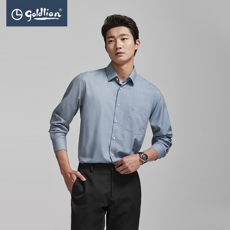 时尚 男士 格纹百搭舒适商务正装 休闲长袖 衬衣男 金利来秋季 衬衫 新款