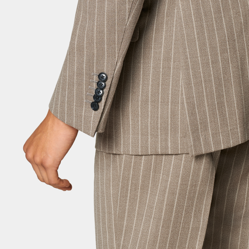 休闲 套装 奥莱SUITSUPPLY西服砂砾色羊毛合体男士 条纹双排扣西装