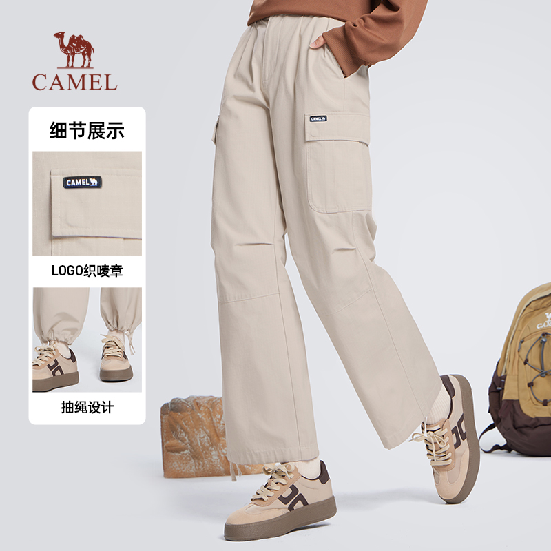 纯棉百搭直筒束脚休闲户外运动长裤 骆驼女装 2025春秋新款 裤 子 工装