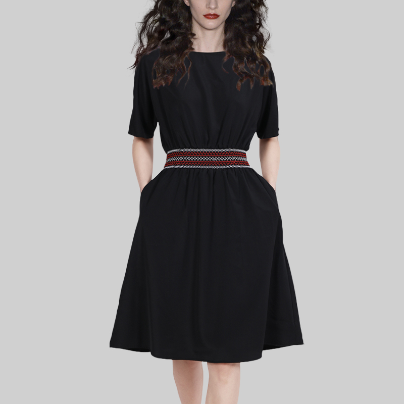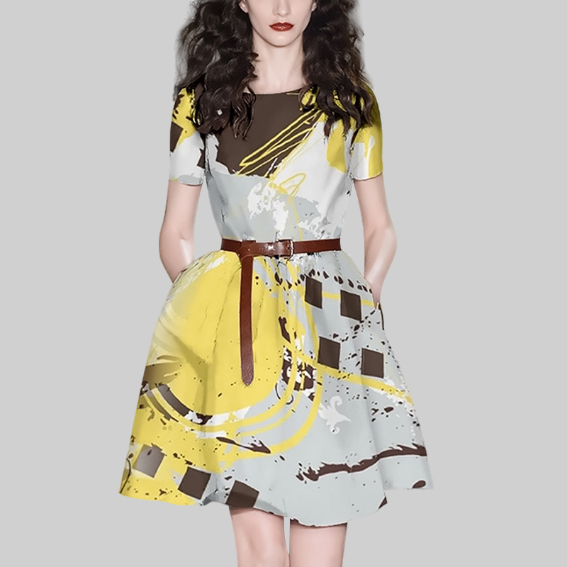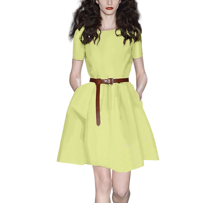 短袖 2025夏季 设计感减龄连衣裙设计感收腰修身 法式 圆领A字裙 新款