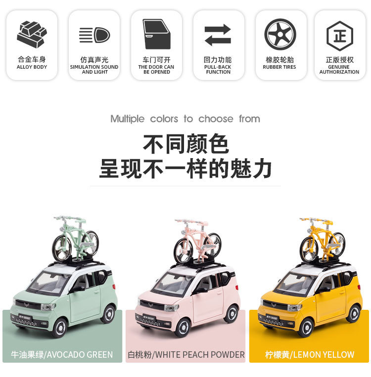 汽车仿真五菱宏光mini马卡龙卡通车载合金模型车内男女装 饰品大全