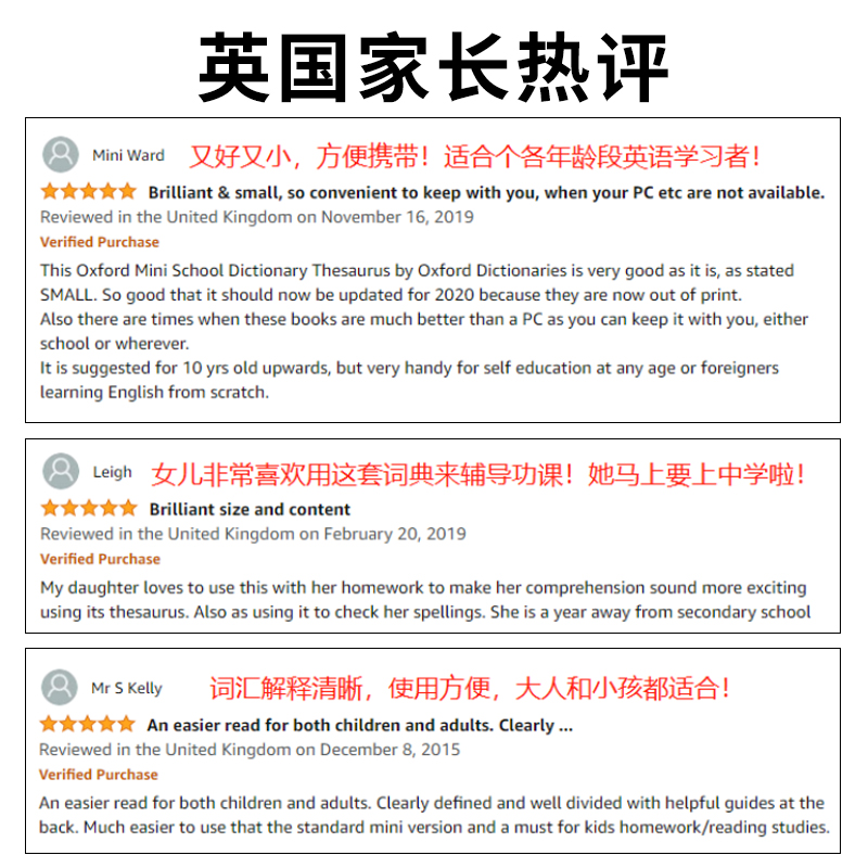 珍词典Oxford Mini Thesaurus三件套英文袖 自营 珍迷你牛津词典同义词字典工具书 and 牛津中小学袖 Dictionary School
