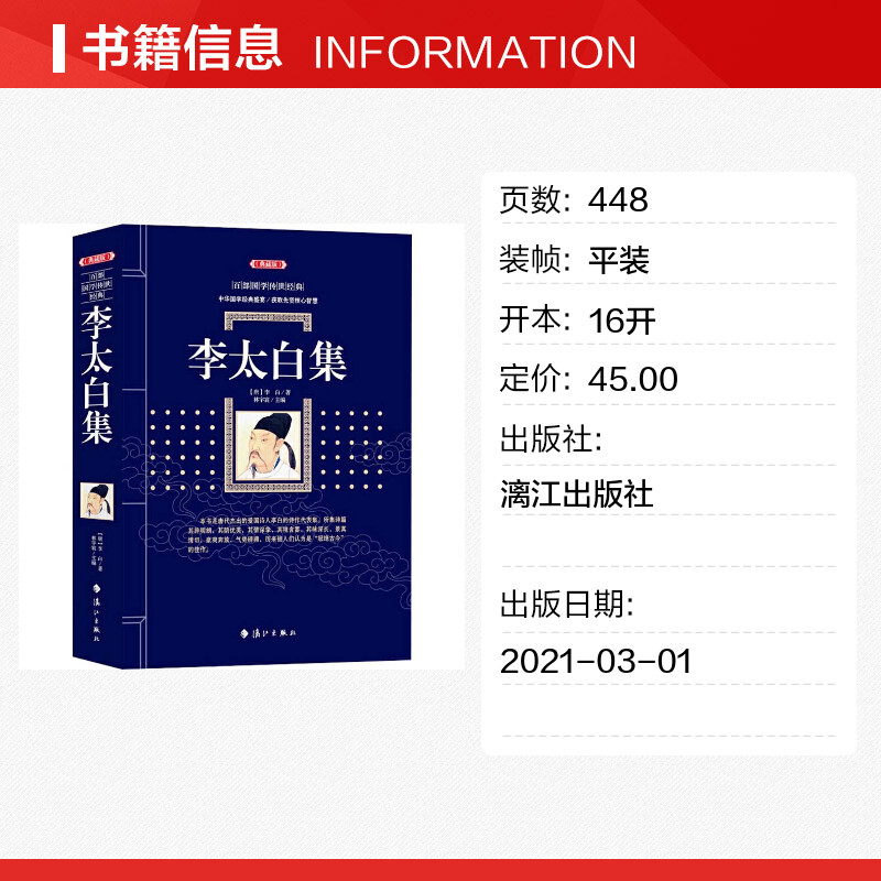 图书籍 社 李白 编 中学教辅文学 林宇宸 唐 著 漓江出版 李太白集 新华书店正版 典藏版