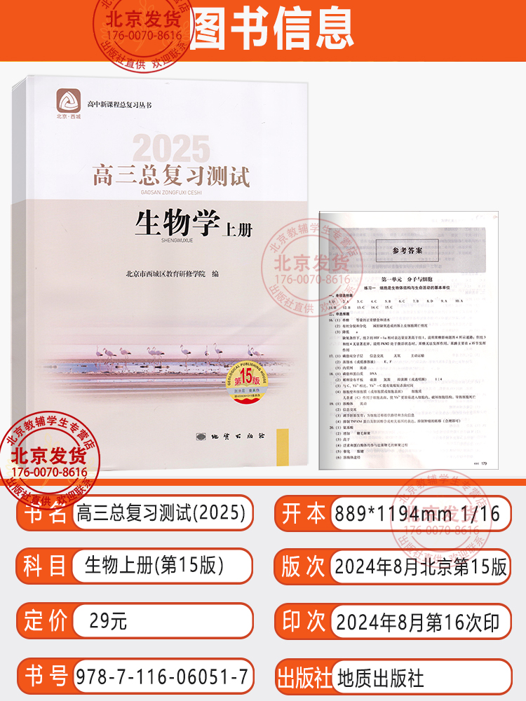 北京西城 2本套装 学探诊高中高考高3生物上册北京市西城教育研修学院 下册15版 2026高三生物总复习指导与测试上册第16版