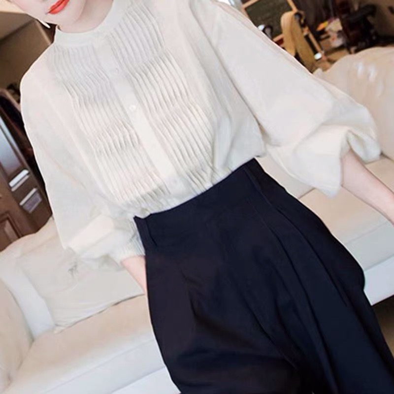 女白色灯笼袖 2025春季 复古气质衬衫 设计感小众法式 雪纺上衣女 新款