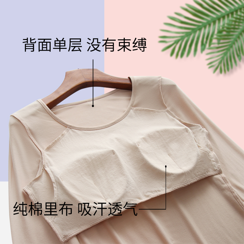 免穿文胸秋衣秋 冬 buupnn带胸垫打底内衣莫代尔t恤大码 上衣女长袖