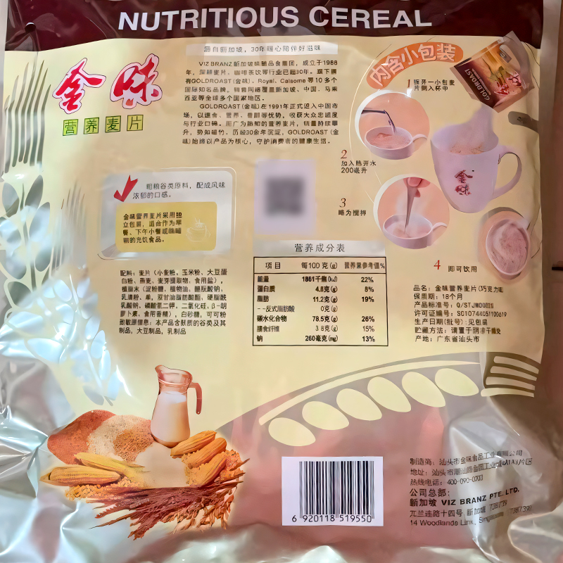 金味巧克力味营养麦片600g谷物早餐即食冲饮即冲速溶麦片