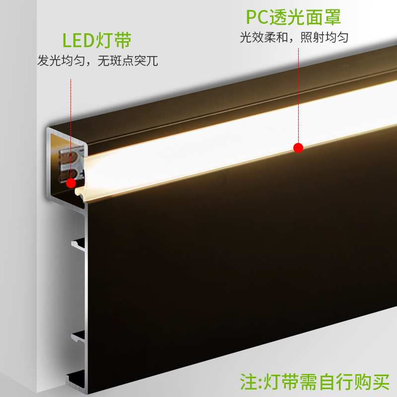 铝合金踢脚线带LED灯金属明装 不锈钢墙脚线贴脚线带灯发光地脚线
