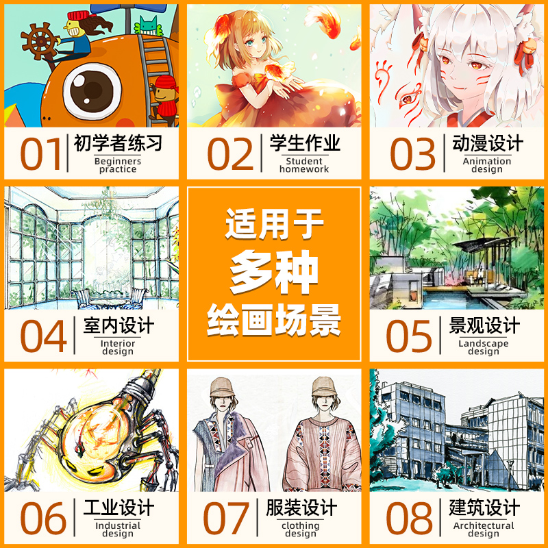 touchcolor马克笔美术专用套装 100色儿童油性动漫双头60色80色水彩笔彩笔漫画小学生48色36色24色画笔礼物