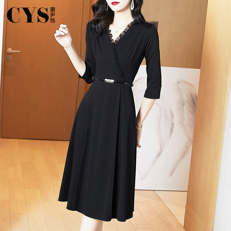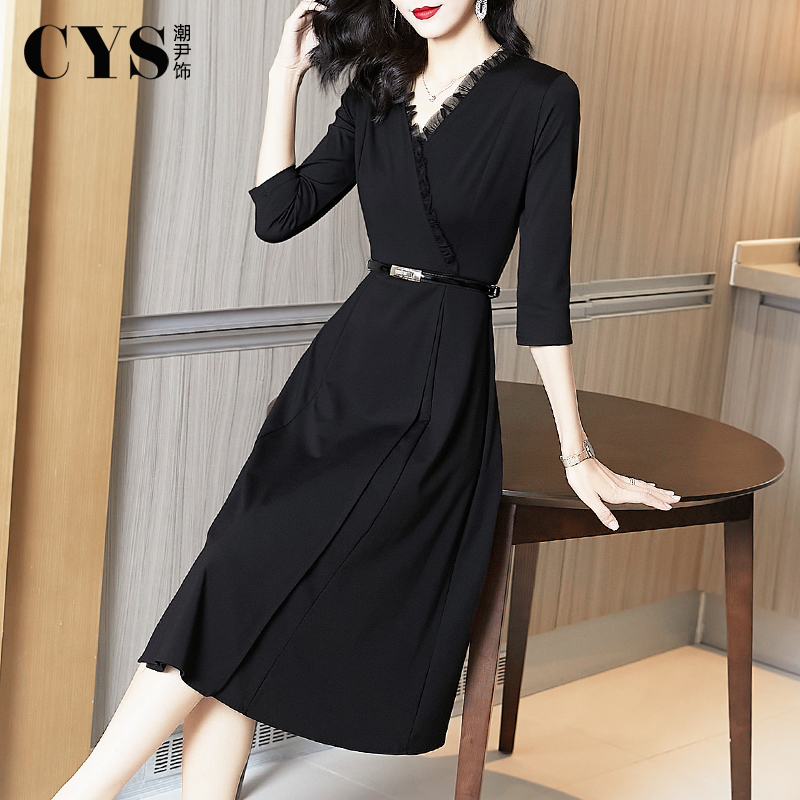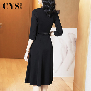 连衣裙 长裙2025年春新款 朗姿小黑裙衬衫 裙气质高级感复古显瘦法式