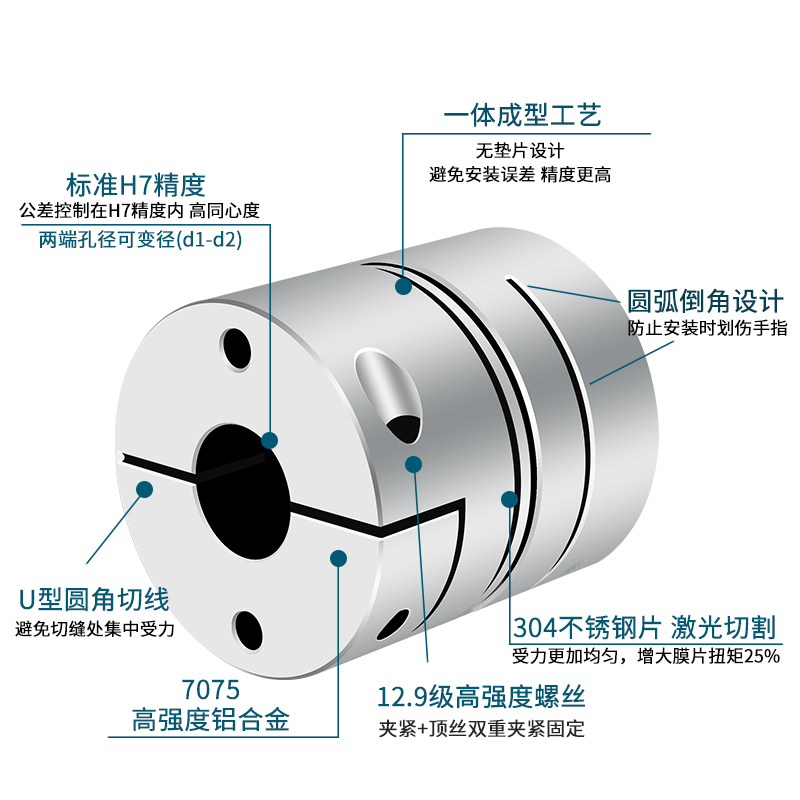 铝合金弹性单双膜片防止偏心联轴器伺服电机丝杆减速机连接器变径