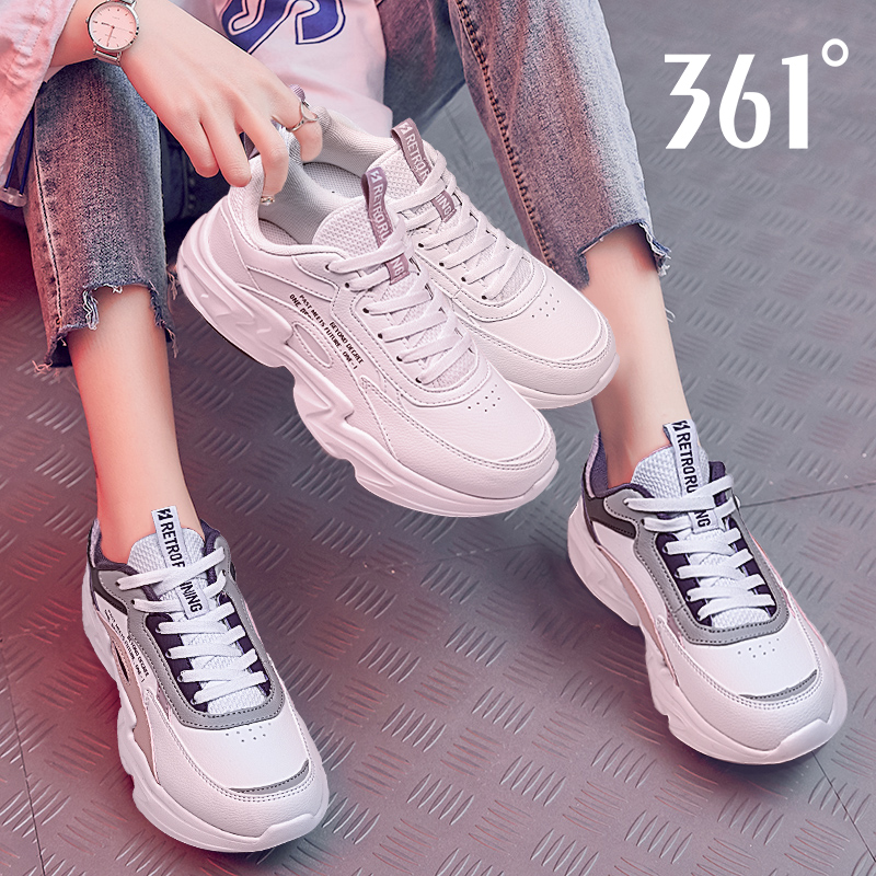 皮面防水旅游鞋 361度官方旗舰店运动鞋 女款 休闲鞋 女 老爹鞋 361女鞋
