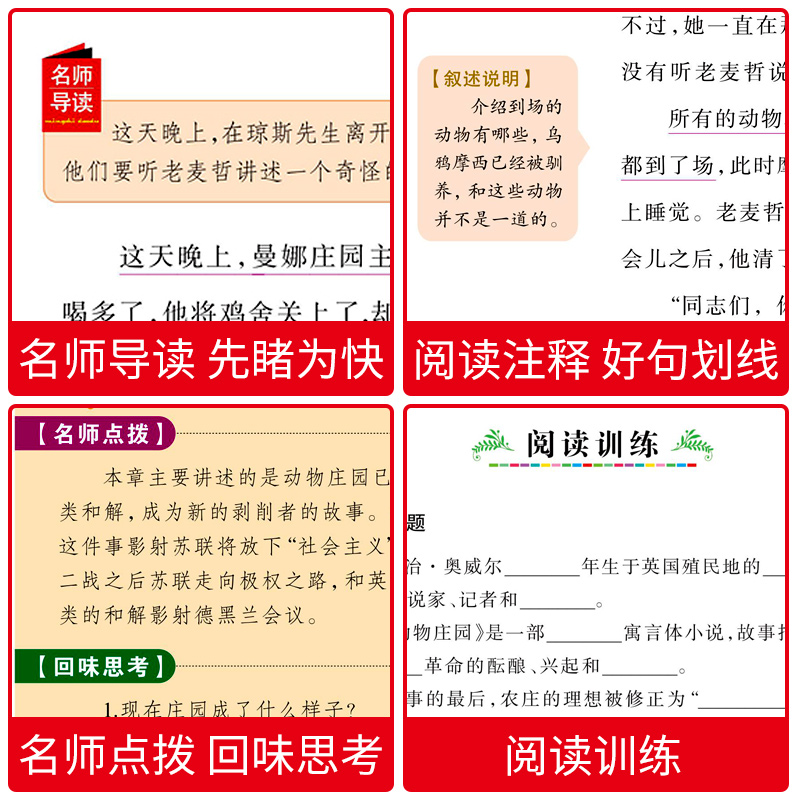 名师导读带批注读后感吉林大学出版 乔治奥威尔原著小学生青少年三四五六年级必读文学书彩图美绘插画版 邓敏华译 中文版 动物庄园原版