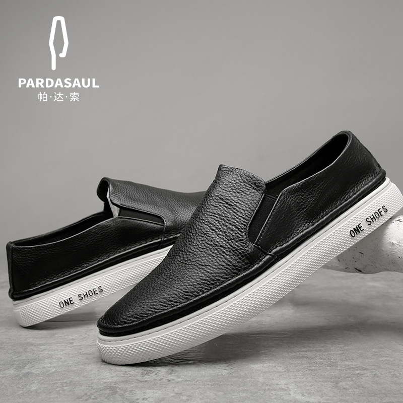 男鞋 皮面百搭休闲鞋 秋冬新款 子黑白厚底运动鞋 防水鞋 鸿星尔克板鞋