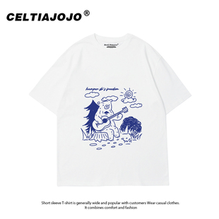 新款 港味个性 2025夏季 T恤男女宽松韩版 ulzzang上衣 卡通复古风短袖