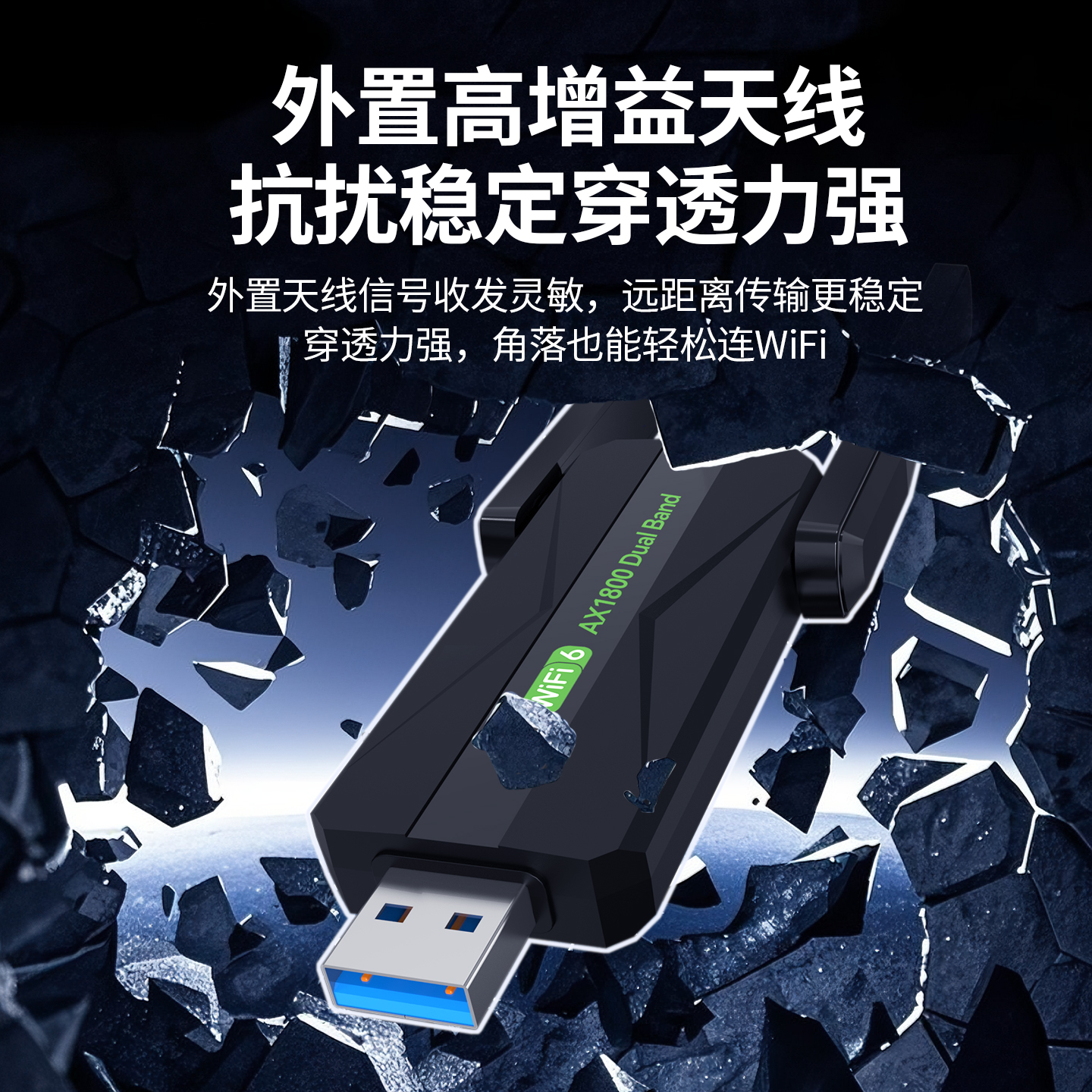 免驱动WiFi6无线网卡台式 机笔记本外置USB3.0电竞网卡千兆5G双频1800兆 电脑无线wifi接收器台式