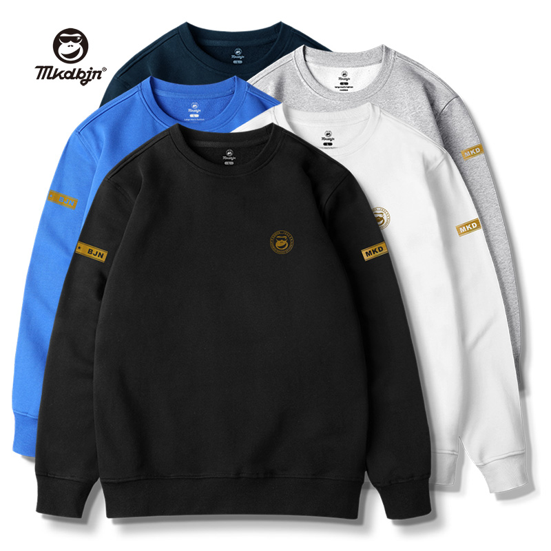 2025新款 mkdbjn猴嘴潮牌大码 春秋季 卫衣男加肥加大圆领长袖 薄 男装