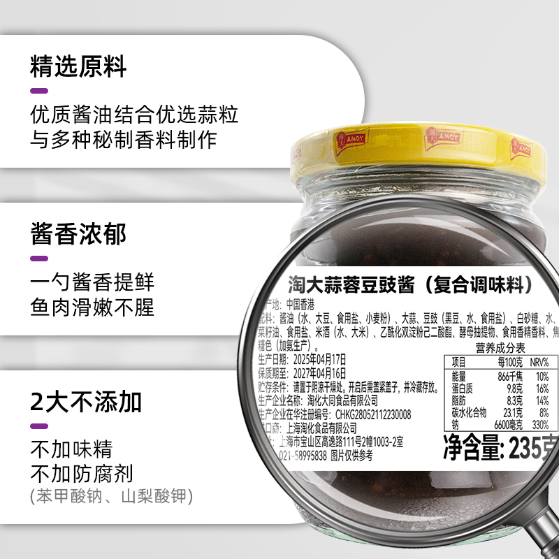 淘大香港进口蒜蓉豆豉酱235g零添加防腐剂炒菜豉汁排骨凉拌酱调料