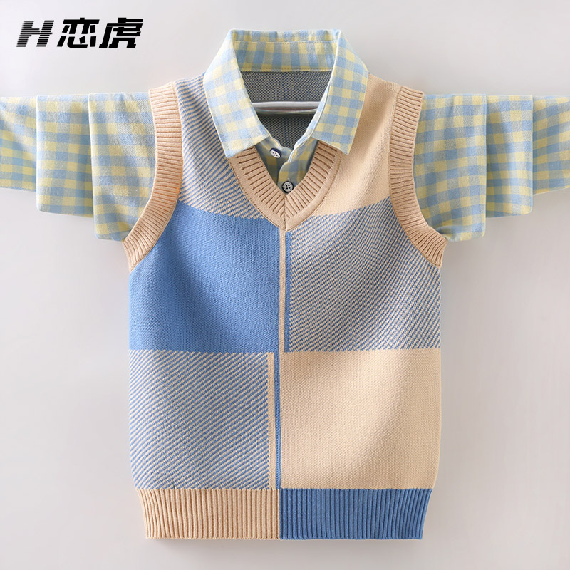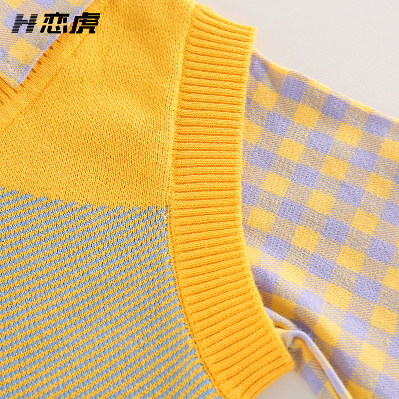 全棉时代女士纯棉线毛衣针织背心马甲V领套头打底衫 门店同款
