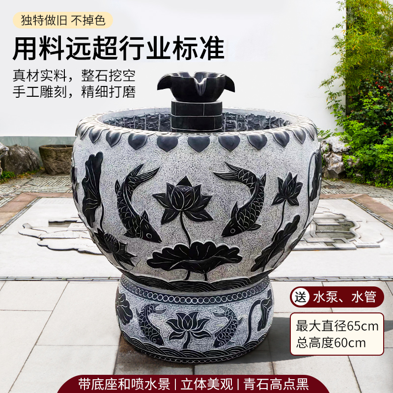石雕门墩抱鼓石一对天然青石别墅庭院大门口仿古石头摆件石墩石鼓