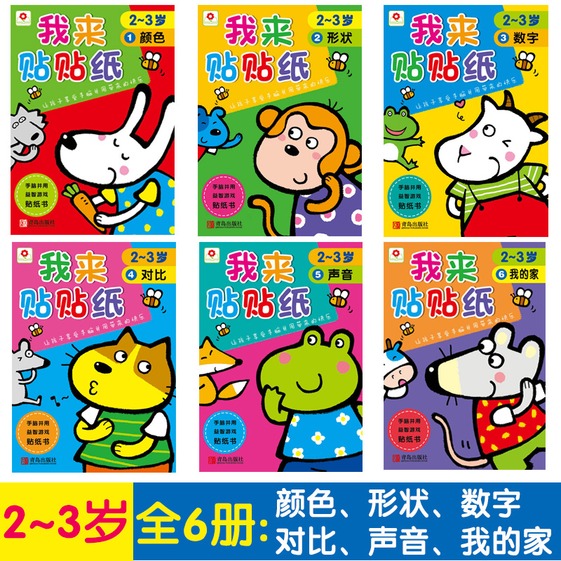 邦臣小红花儿童我来贴贴纸2 3岁全6册粘贴贴纸幼儿园贴画书卡通玩具早教贴贴画幼儿早教趣味益智游戏书智力开发逻辑思维专注力训练