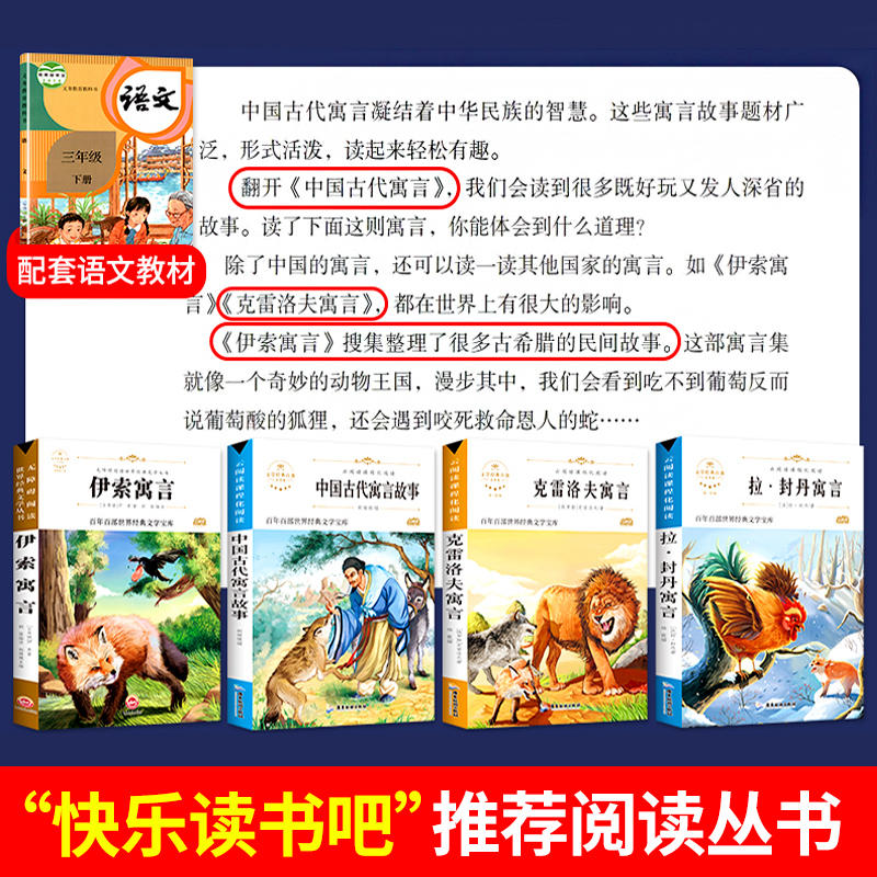 伊索寓言克雷洛夫全集 书目全套四册小学生阅读书籍拉封丹人教版 快乐读书吧中国古代寓言故事三年级下册课外书必读 经典