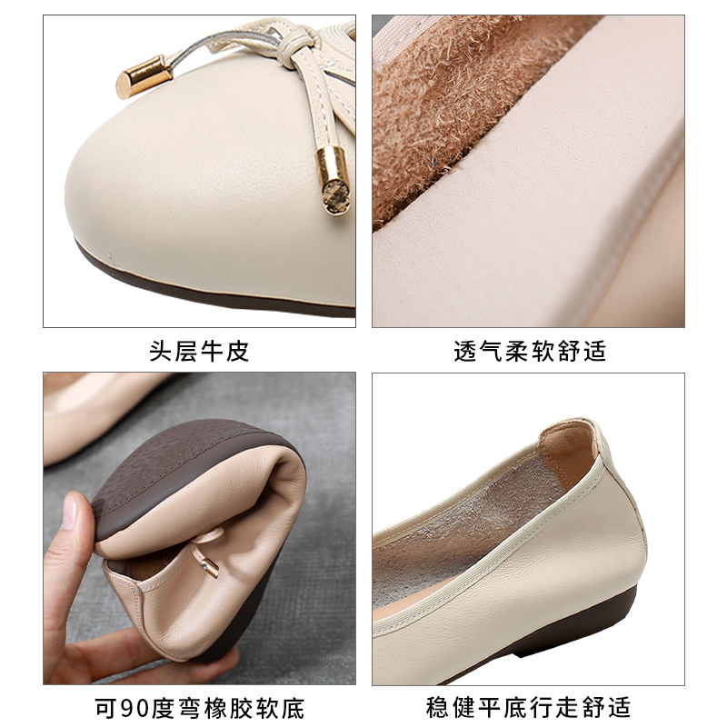 女2025新款 仙女温柔鞋 夏蛋卷软底软皮豆豆鞋 女鞋 真皮大码 平底单鞋
