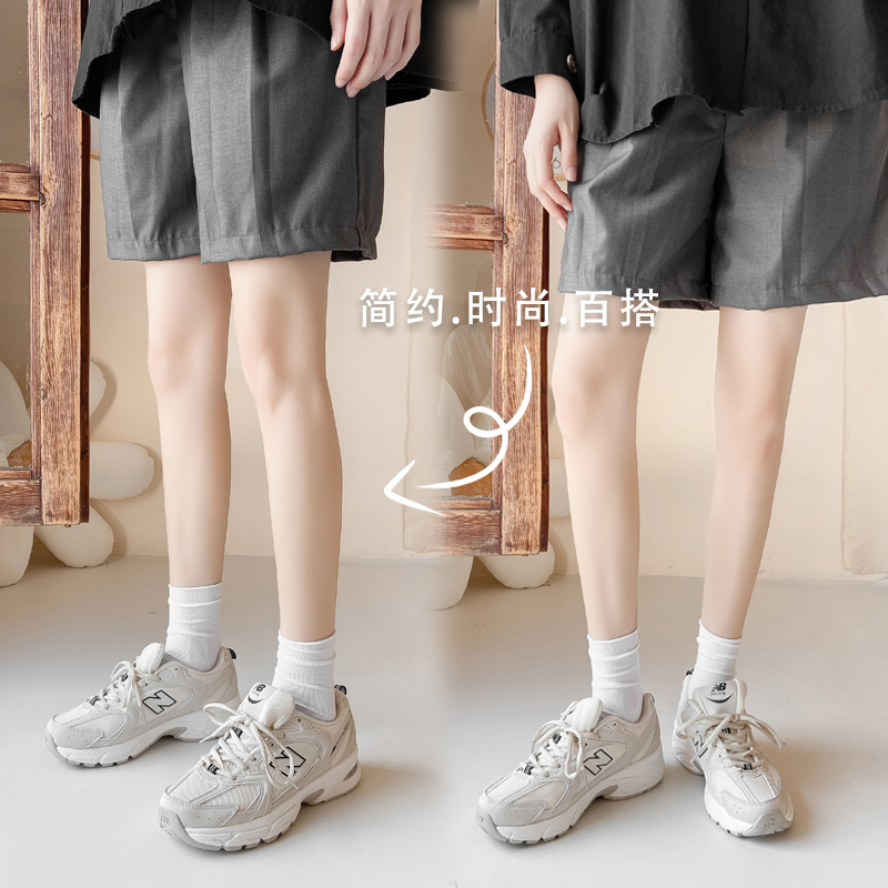 乐福鞋 纯棉中筒袜春秋黑色搭配小皮鞋 长筒袜子 冬季 灰色堆堆袜女款