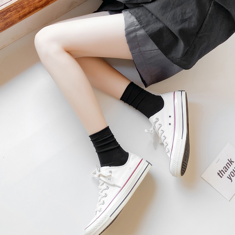 薄款 黑色袜子女中筒袜春秋季 堆堆长筒过膝袜jk压力瘦腿小腿袜夏季