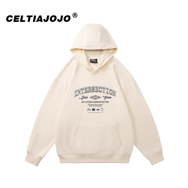 2025年新款 字母印花加绒连帽卫衣内搭情侣 复古设计感vintage美式